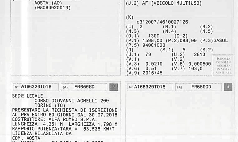 ACCESSORI: AIRBAG FRONTALI E LATERALI , FARI FENDINEBBIA, INGRESSO USB, SISTEMA ALFA D.N.A. , START & STOP, FISSAGGI ISOFIX, VOLANTE MULTIFUNZIONE, VIVAVOCE, SENSORI POSTERIORI DI PARCHEGGIO, RUOTINO DI SCORTA, 5 POSTO… UNICO PROPRIETARIO