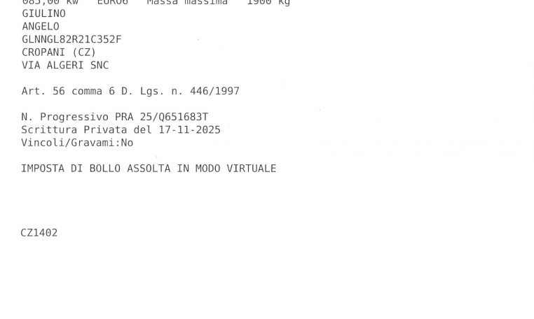 GARANZIA LEGALE 12 MESI + ASSISTENZA STRADALE
