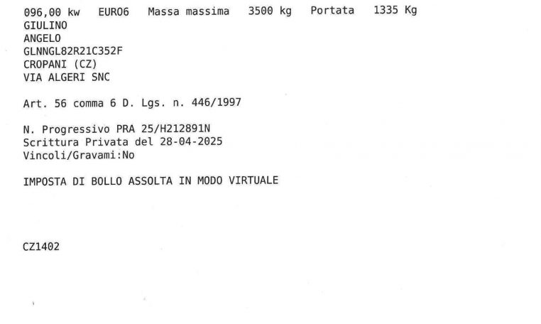 Lunghezza: m 4,00 – Larghezza Min ( Passaruota ): 1,42 m