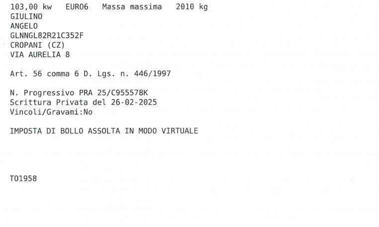 GARANZIA LEGALE 12 MESI + ASSISTENZA STRADALE